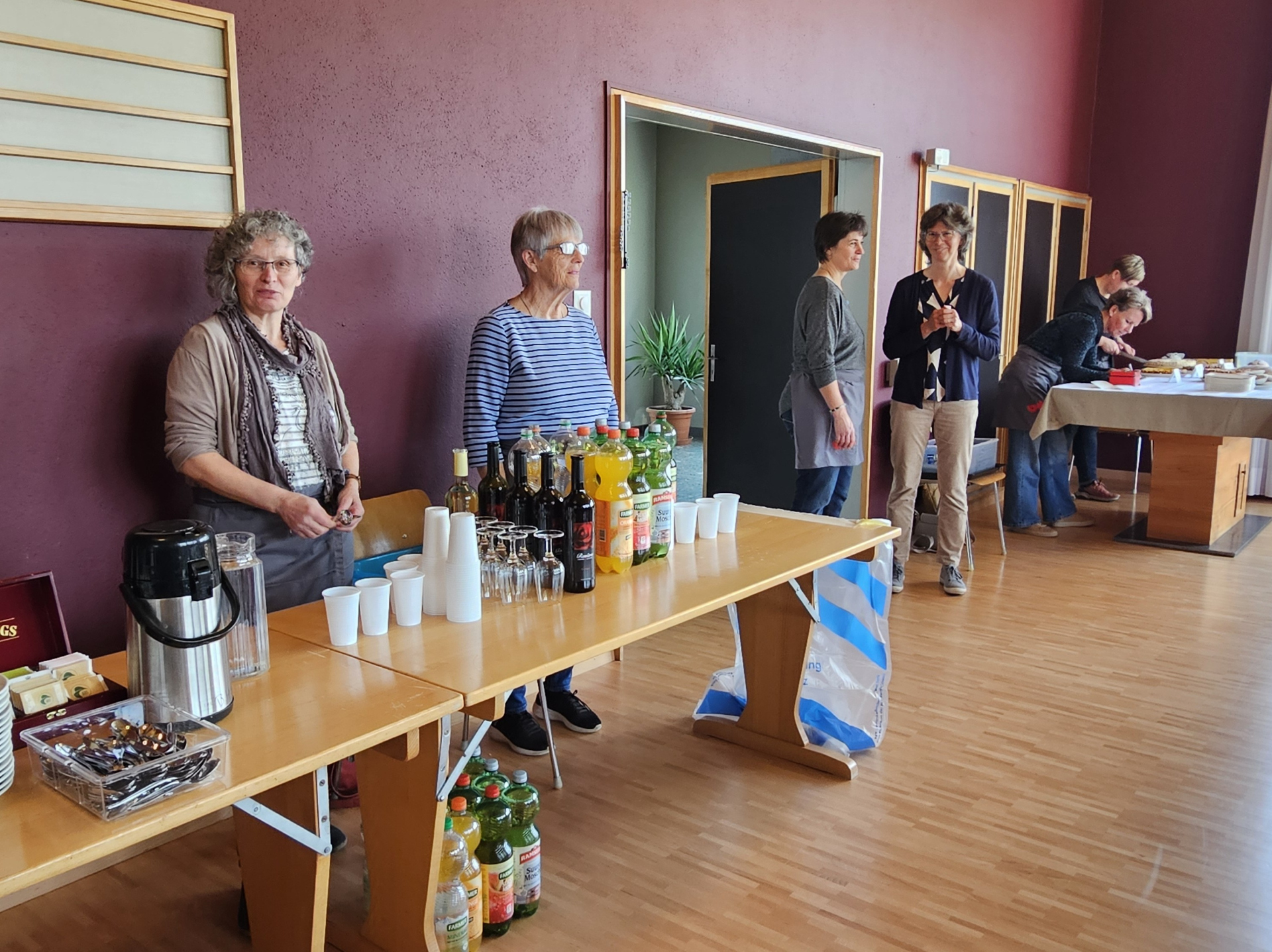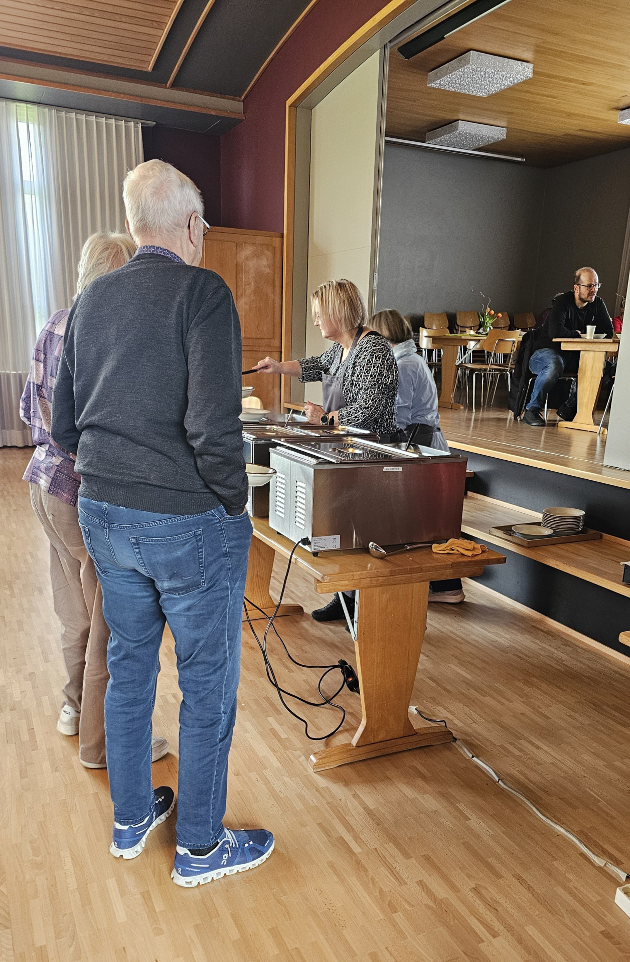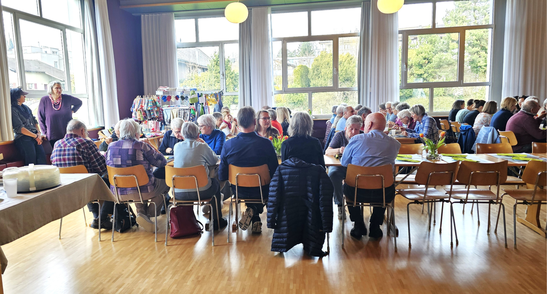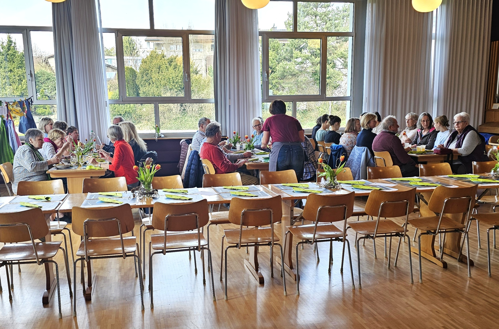 Schon beim Treppenaufgang wurden die Besucher und Besucherinnen herzlich empfangen. Beim näheren Hinsehen stand vor dem Eingang ein Arrangement mit einem speziellen Willkommensgruss. An diesem herrlichen Tag trudelten die ersten Gäste pünktlich um 11 Uhr 30 ein. Angelockt durch feine Düfte liessen sie sich an den wunderschön gedeckten Tischen nieder. Schon bald wuselte das Servicepersonal durch die gut besetzten Reihen, und brachte das gewünschte an die Tische. Nur den Nachschlag durfte sich jeder selber holen. Wie in den letzten Jahren überzeugte Corina Wohlgensinger, unsere Köchin, mit drei verschiedenen Reisgerichten die Anwesenden! Man hörte nur lobende Worte. Über den grossen Besucheraufmarsch freute sich das Organisationsteam sehr. Am reichen und vielfältigen Dessertbuffet fiel einem die Auswahl sichtlich schwer. Bei einem Kaffee konnte man sich die süsse Versuchung schmecken lassen. Bei ausgiebigem Plaudern und gemütlichem Beisammensein wurde unser Reistag auch dieses Jahr zu einem grossen Erfolg. Ein herzliches Dankeschön geht an alle Helferinnen, ohne ihren grossen Einsatz wäre der Anlass nicht denkbar! Auch die vielen Besucher haben einen Dank verdient, ohne ihr Erscheinen gäbe es keine Spende an die ökumenische Kampagne Fastenaktion und HEKS. Jeannette Weiss