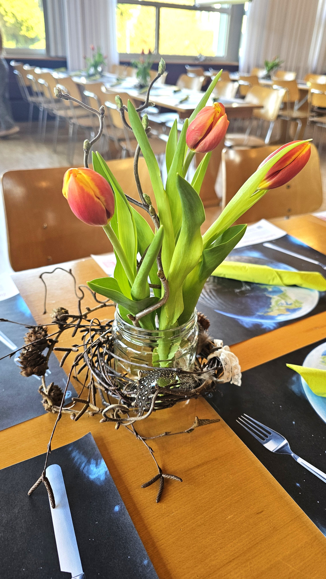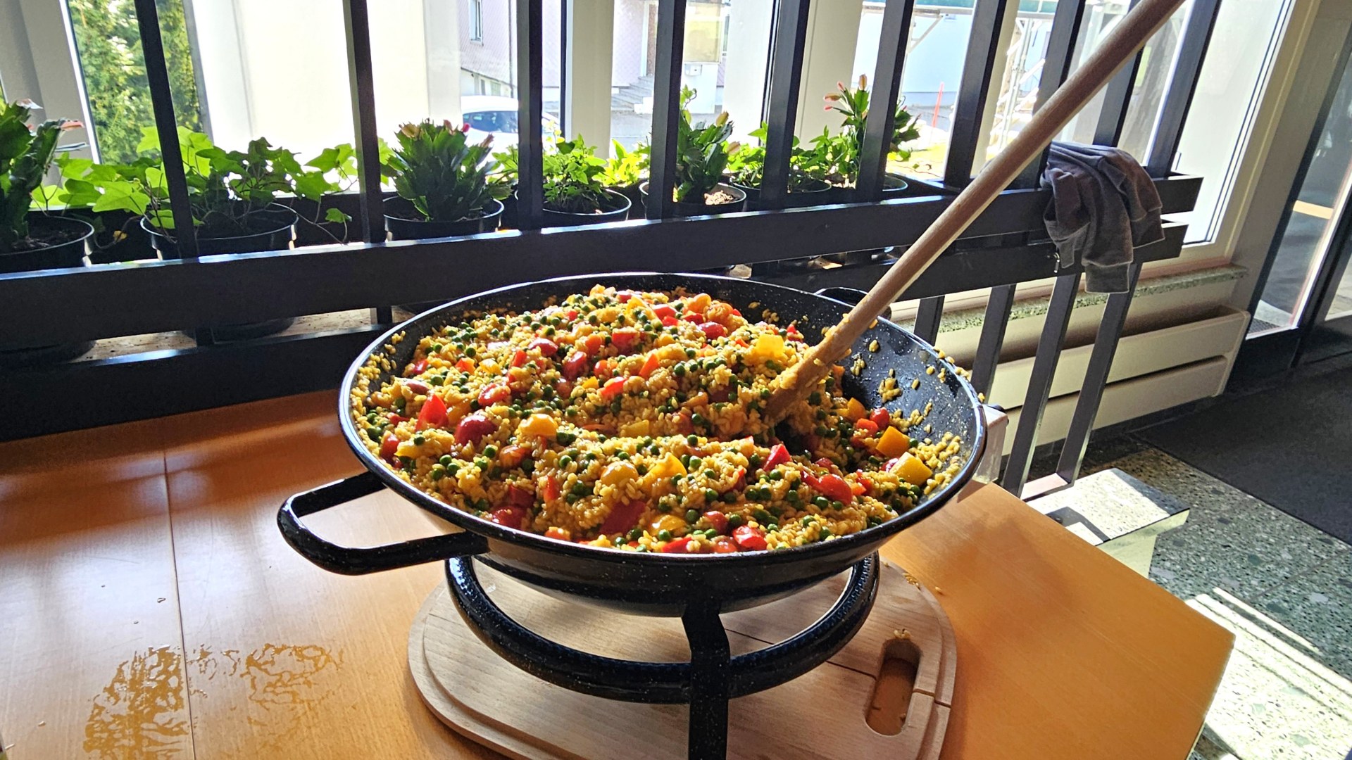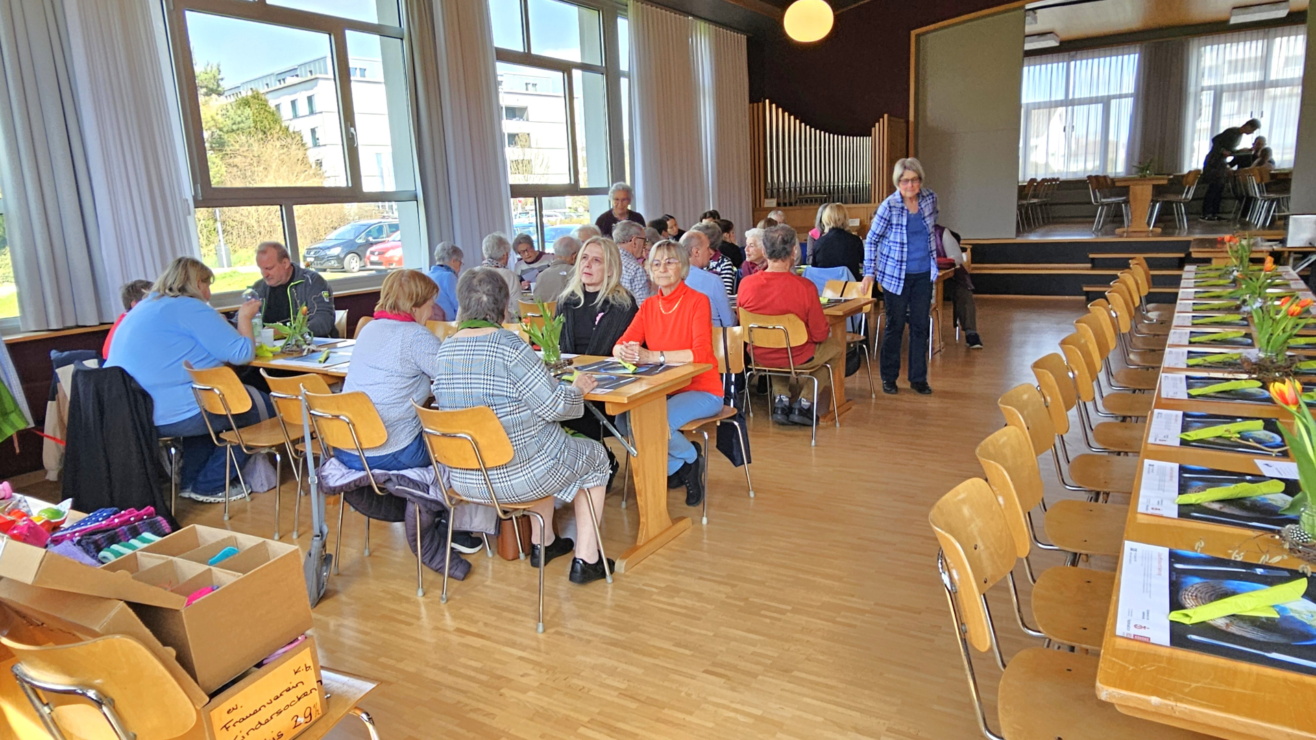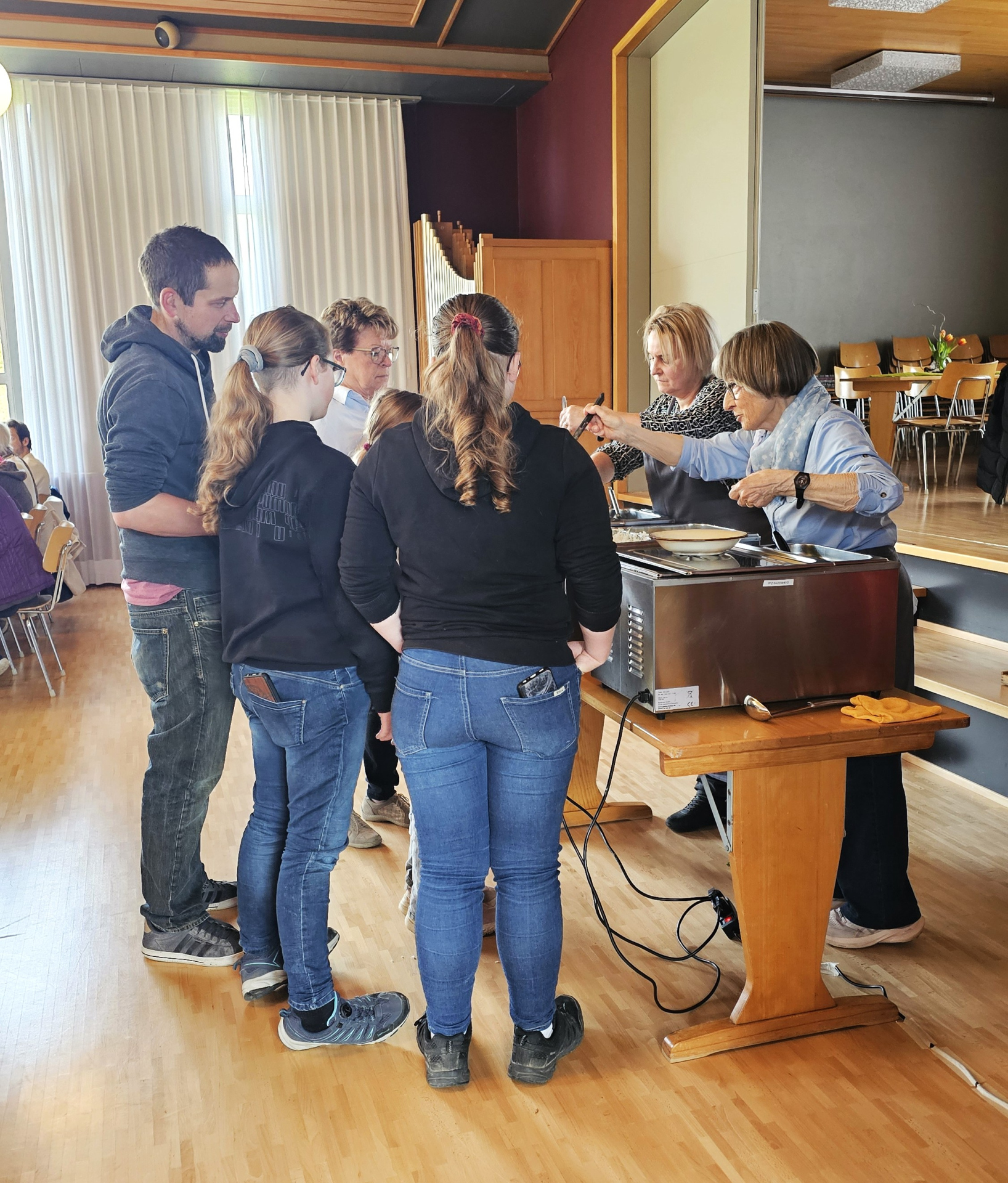 Schon beim Treppenaufgang wurden die Besucher und Besucherinnen herzlich empfangen. Beim näheren Hinsehen stand vor dem Eingang ein Arrangement mit einem speziellen Willkommensgruss. An diesem herrlichen Tag trudelten die ersten Gäste pünktlich um 11 Uhr 30 ein. Angelockt durch feine Düfte liessen sie sich an den wunderschön gedeckten Tischen nieder. Schon bald wuselte das Servicepersonal durch die gut besetzten Reihen, und brachte das gewünschte an die Tische. Nur den Nachschlag durfte sich jeder selber holen. Wie in den letzten Jahren überzeugte Corina Wohlgensinger, unsere Köchin, mit drei verschiedenen Reisgerichten die Anwesenden! Man hörte nur lobende Worte. Über den grossen Besucheraufmarsch freute sich das Organisationsteam sehr. Am reichen und vielfältigen Dessertbuffet fiel einem die Auswahl sichtlich schwer. Bei einem Kaffee konnte man sich die süsse Versuchung schmecken lassen. Bei ausgiebigem Plaudern und gemütlichem Beisammensein wurde unser Reistag auch dieses Jahr zu einem grossen Erfolg. Ein herzliches Dankeschön geht an alle Helferinnen, ohne ihren grossen Einsatz wäre der Anlass nicht denkbar! Auch die vielen Besucher haben einen Dank verdient, ohne ihr Erscheinen gäbe es keine Spende an die ökumenische Kampagne Fastenaktion und HEKS. Jeannette Weiss