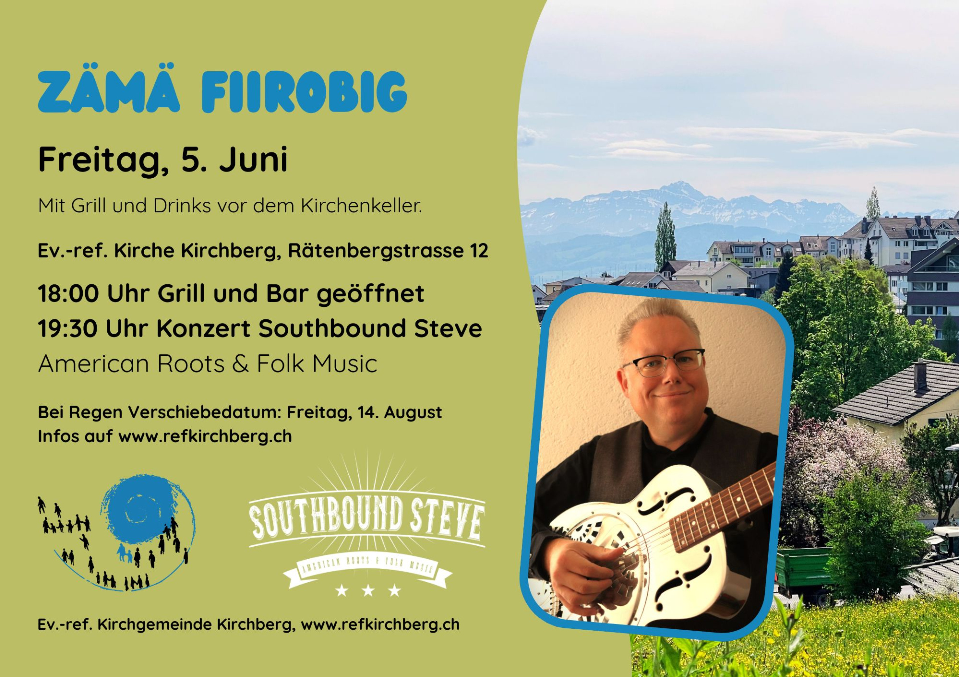Wir laden Sie ein, am Freitag, 5. Juni bei Grill und Musik den Feierabend zu geniessen. Grill und Bar sind ab 18 Uhr geöffnet, um 19:30 beginnt das Konzert von Southbound Steve, American Roots & Folk Music.